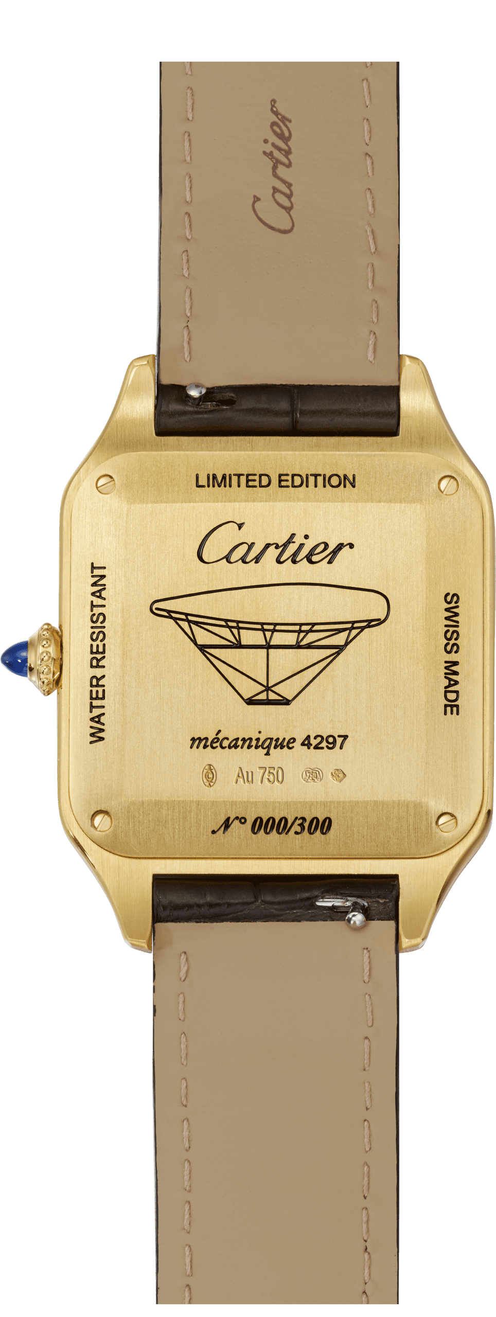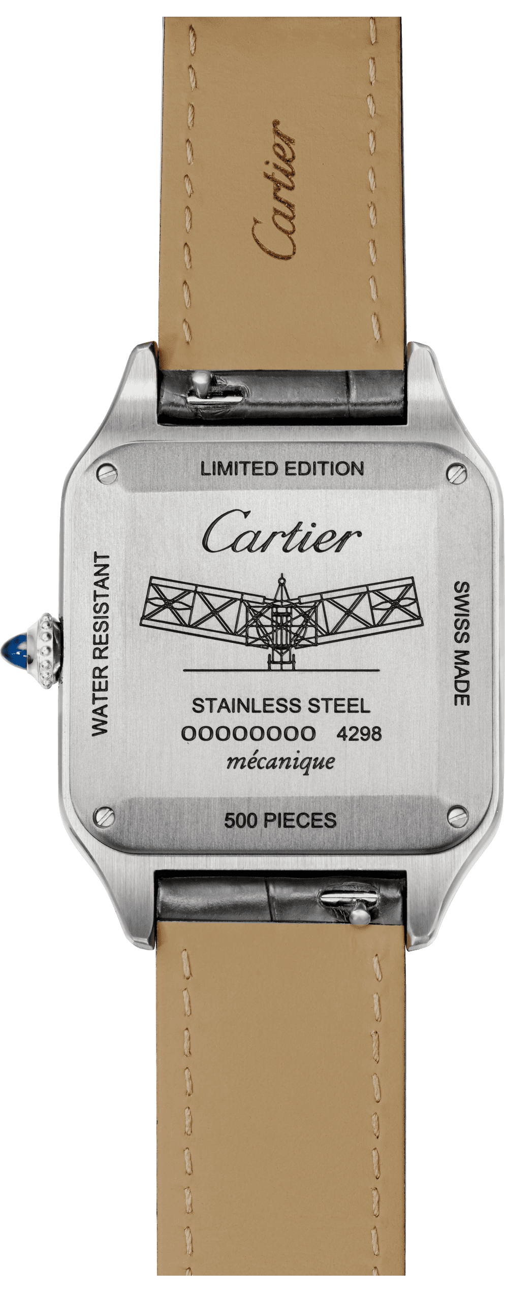 Cartier plays with the story of adventurer Santos-Dumont and adds for exclusive limited editions to the Santos Collection. Inside the limited editions there is a mechanical hand-wound movement and the case back comes engraved with the original plans of Santos-Dumont himself.