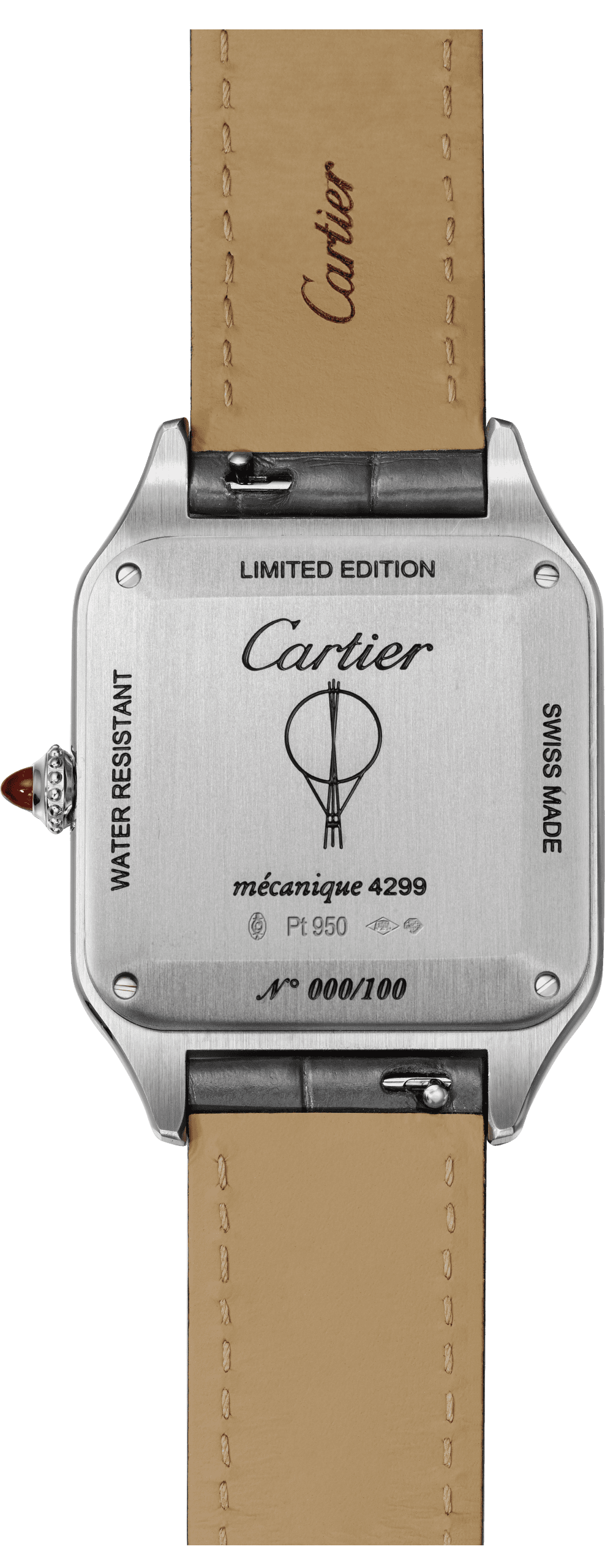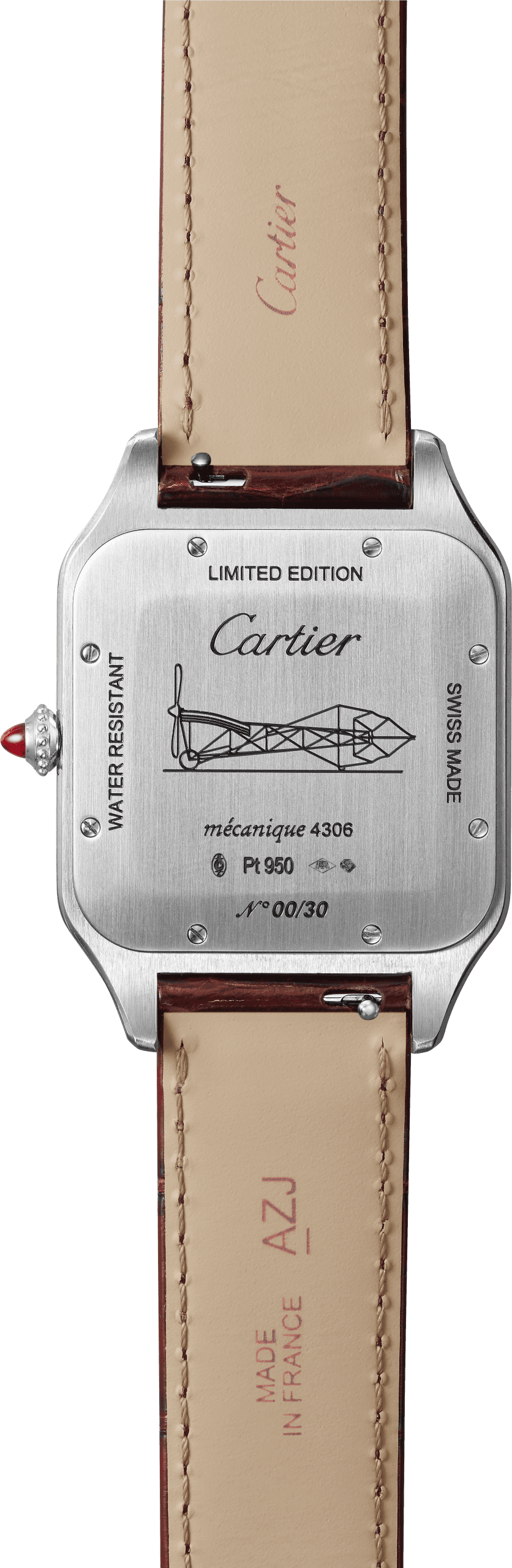 The “Le Brésil” Santos-Dumont watch comes in a platinum case with silvered dial decorated with 12 polished metallic Roman numerals, sword-shaped hands and a ruby on the winding crown. On the reverse is engraved the design of Santos- Dumont’s very first machine, “Le Brésil”, created in 1898 – “the smallest” and “the most beautiful”, according to the aviator. Its unveiling took place on 4 July 1898, after which a series of airships numbered 1 to 22 would emerge between 1898 and 1909, representing his many attempts to defy the laws of weightlessness. The edition is numbered and limited to 100 pieces.