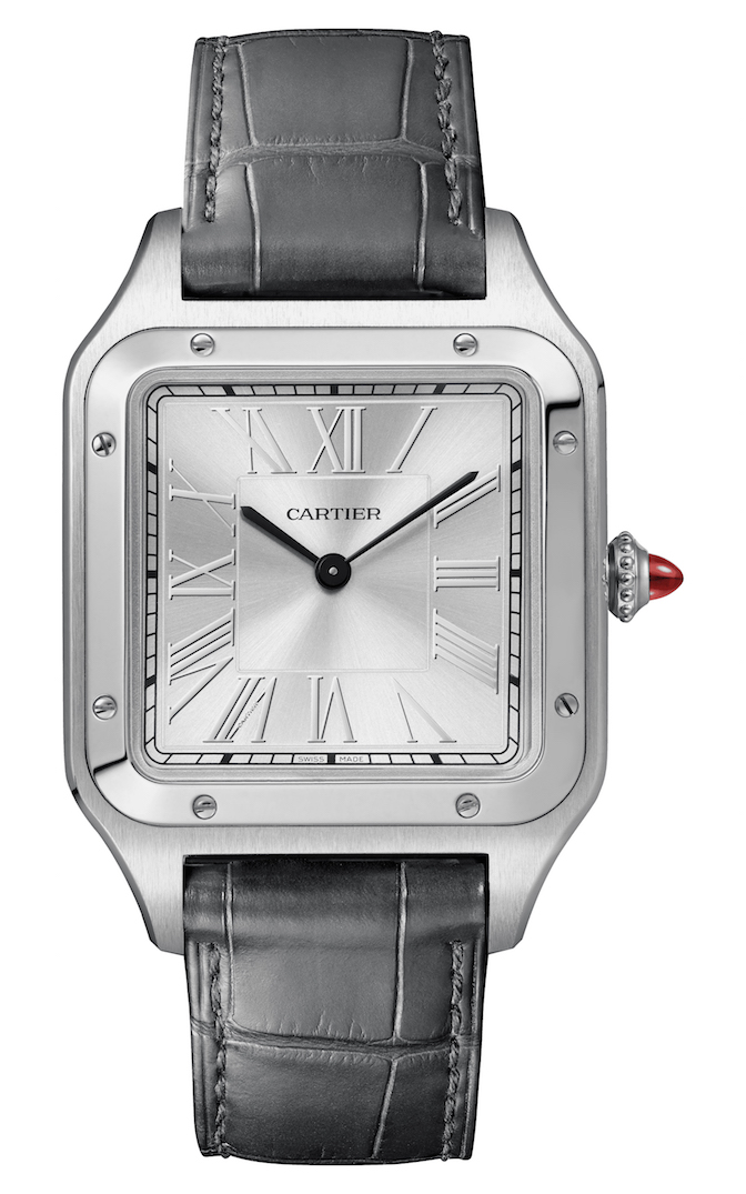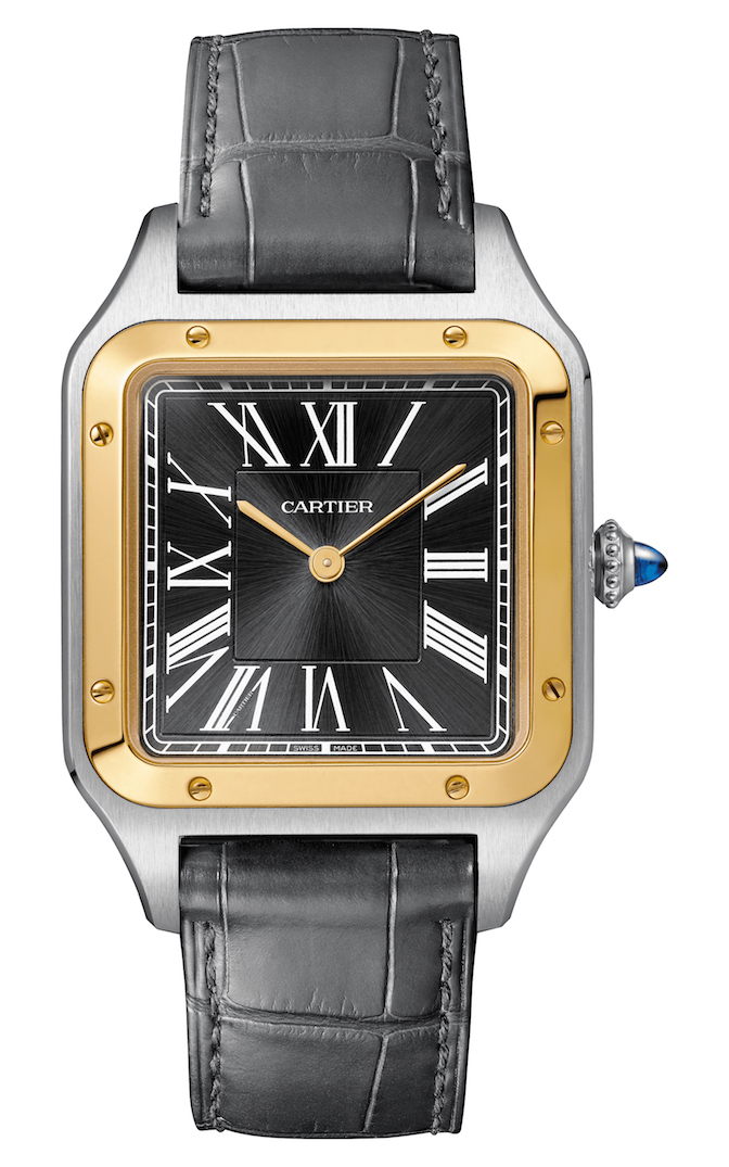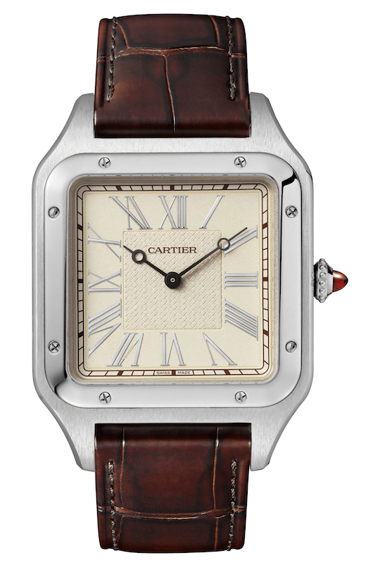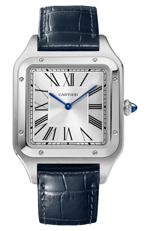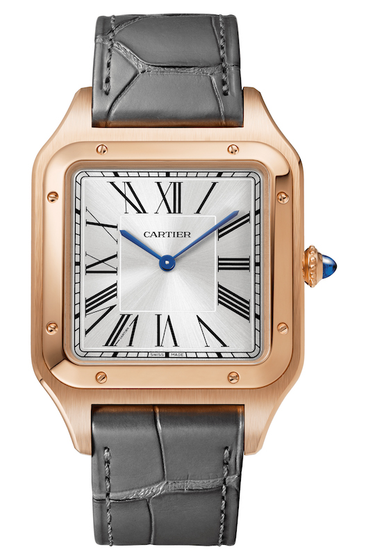 The Santos-Dumont collection welcomes an XL version with a case of 46,6 x 33,9 mm. Inside the case, Cartier adds an in-house caliber with manual winding – 430 MC – and a power reserve of 38 hours.