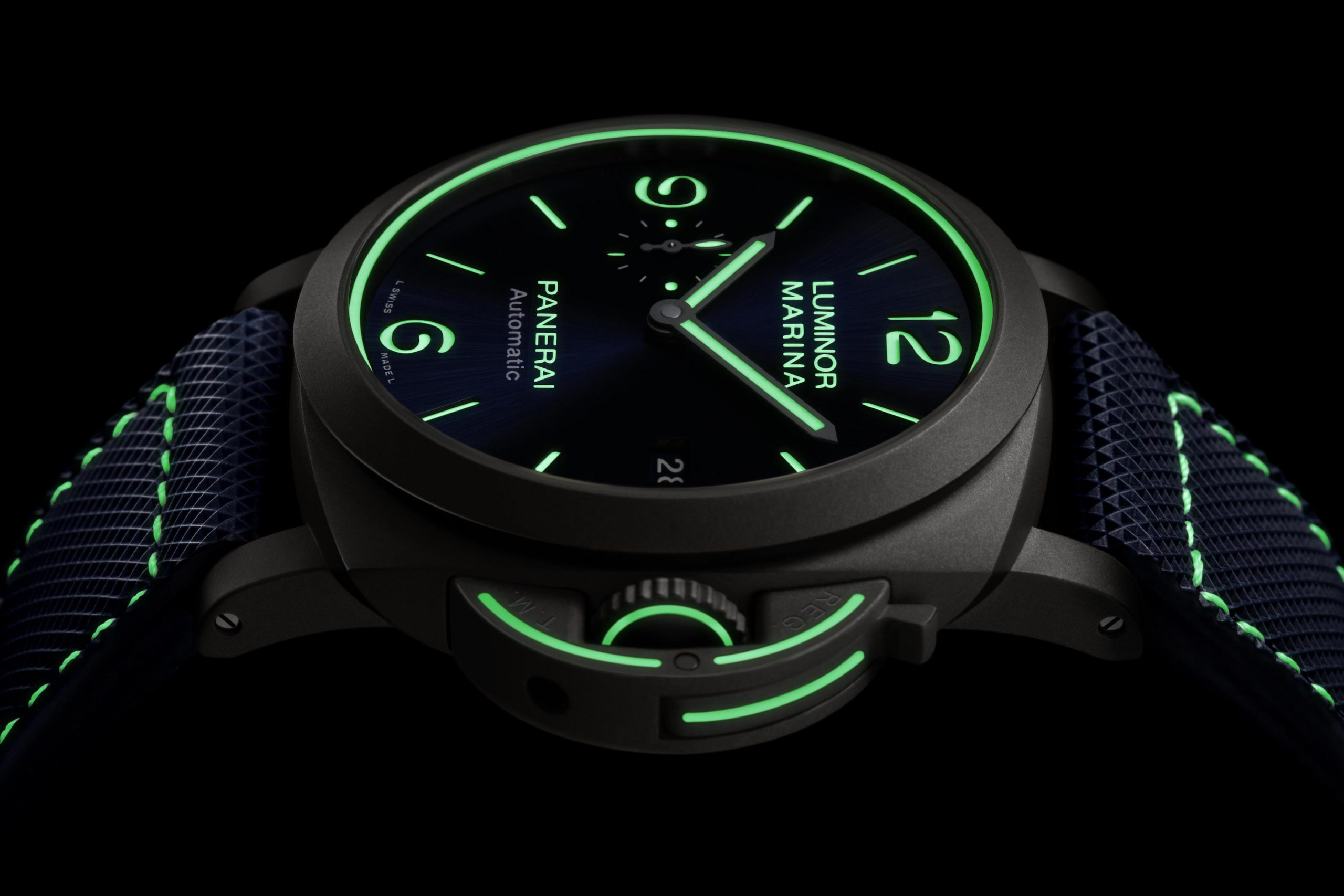 Some new references in the Luminor collection celebrate the 7 decades of bringing more light to the seas with a larger luminous drawing that extends also outside the dial. But, most important, they use revolutionary materials as to make the cases lighter and stronger while maintaining a 44 mm diameter. For example, the new PAM01117 weights only 100 grams including the strap thanks to a titanium structure manufactured by a technology known as Direct Metal Laser Sintering, a process of futuristic 3D printing. Among the premieres, there is also PAM01663 that uses the new material called Fibratech obtained with natural and eco-sustainable row fibers that proves to be 60% lighter than steel, resilient and highly resistant to corrosion. It is a clear sign that watches evolve and have evolved a lot during the last 10 years. It is a matter of technology but also of communication.